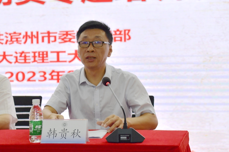韩贵秋代表学校欢迎各位学员的到来,他为学员们介绍了学校的发展历程及取得成就。他指出,本次培训班是我校与滨州市委宣传部的首次合作,学院高度重视,积极筹备,为本次培训班配备了强大的师资力量和有力的运营保障团队,希望能为各位学员提供优质的学习服务,提升滨州市文明实践志愿服务工作队伍的综合能力和社会动员水平,助力滨州市文明城市建设创建工作再上新的台阶。最后,他预祝本次培训圆满成功。
