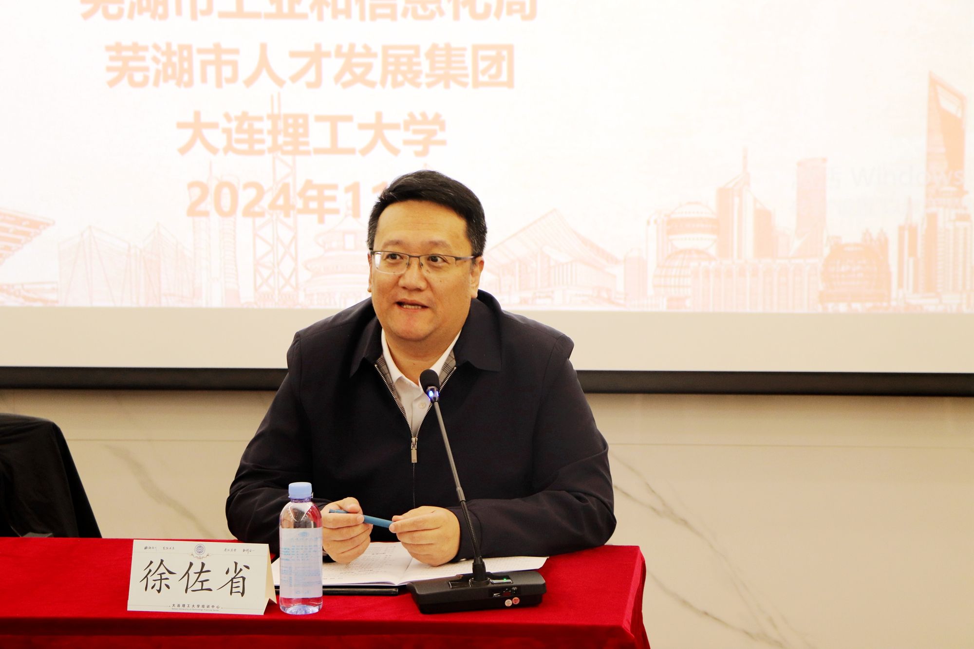 大连理工大学培训中心副主任(远程与继续教育学院副院长)徐佐省在开班仪式上致辞。他代表学校欢迎各位的到来,并为大家介绍了学校的发展历程及取得成就。他指出,本次培训是我校与芜湖市工业和信息化局及芜湖市人才发展集团的首次合作,希望借此契机,双方保持密切沟通与联系,提升芜湖市制造业企业的数字化转型能力,推动企业高质量发展。