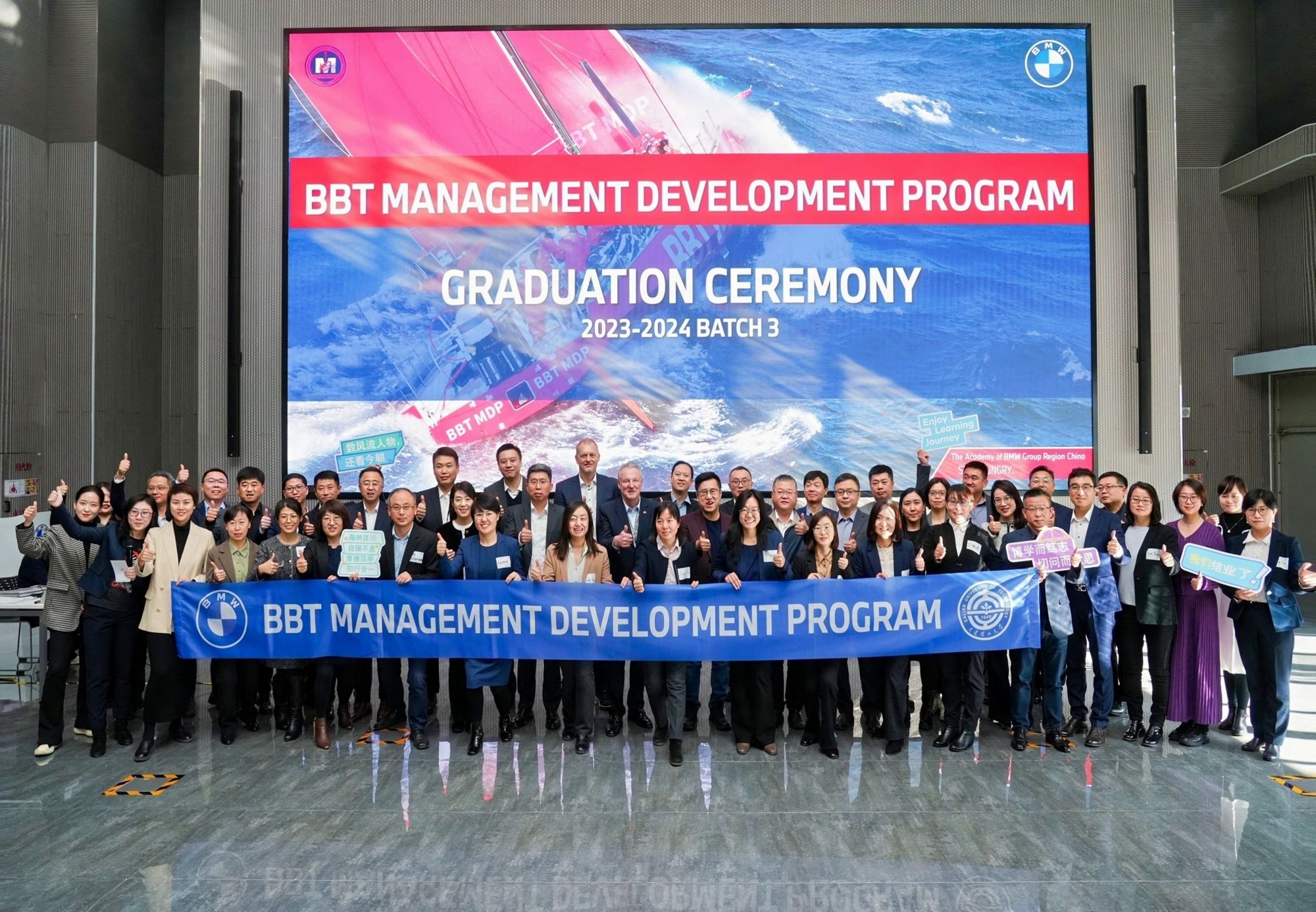 12 月 6 日,大连理工大学BBT Management Development Program(以下简称 BBT MDP)Batch3 结业典礼在华晨宝马培训中心隆重举行,标志着为期三年的高端管理发展项目课程圆满收官,亦为华晨宝马在管理人才的深度储备以及企业战略发展的长远布局方面,绘就了更为绚烂的关键篇章。