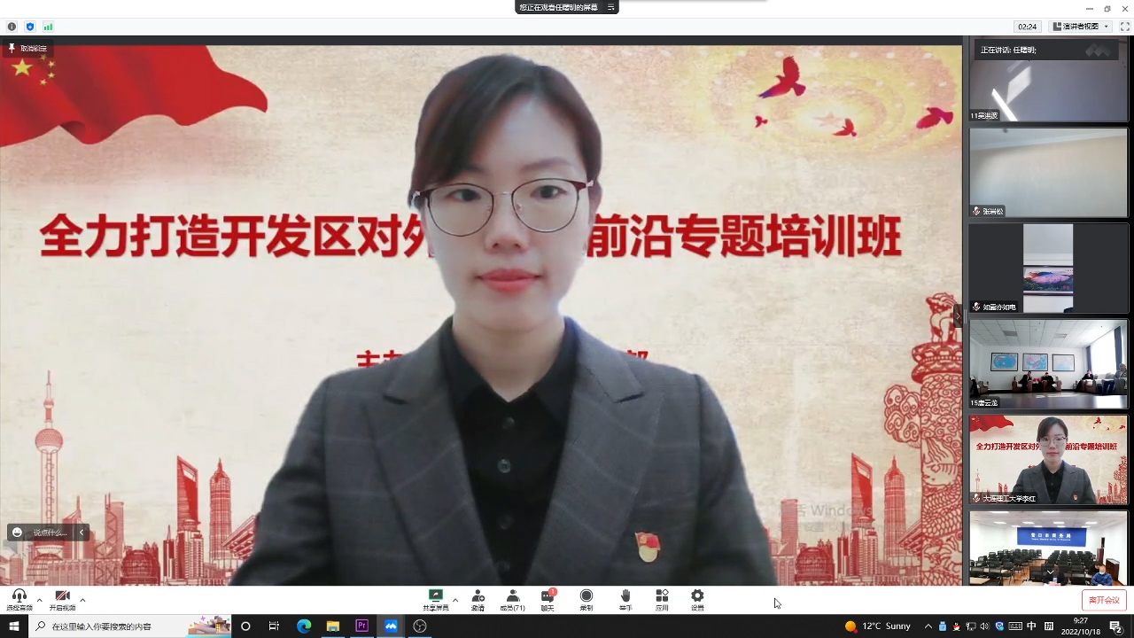 10月18日,由中共辽宁省委组织部、省商务厅主办,我校承办的“全力打造开发区对外开放新前沿专题”培训班在云端开班。辽宁省商务厅党组成员、副厅长郭斌、远程与继续教育学院党委书记韩贵秋出席开班式。来自全省各市商务局和沈抚示范区投资促进局负责开发区工作及49家省级以上经济开发区管委会领导班子成员等共60人参加此次培训。