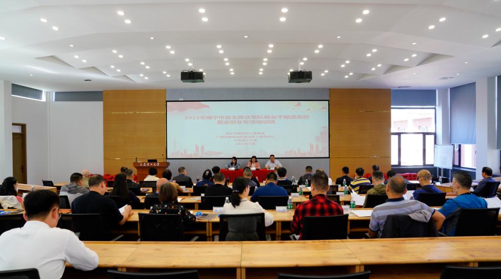 5月23日,2023年南宁市自主择业军队转业干部进名校就业创业专项培训班在远程与继续教育学院开班。南宁市退役军人事务局副局长李勤、远程与继续教育学院副院长徐佐省参加开班式并讲话。南宁市退役军人事务局就业创业科科长黄巧燕主持开班式。