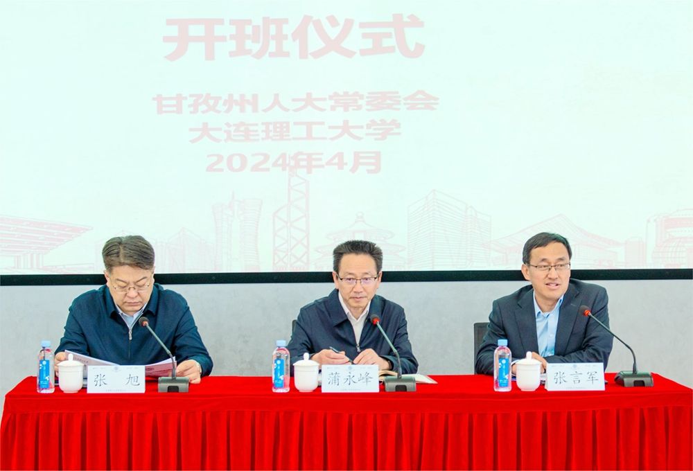 甘孜州人大常委会党组副书记、常委会副主任蒲永峰,大连理工大学党委副书记、副校长张言军,培训中心主任(远程与继续教育学院院长)张旭出席开班仪式。培训中心副主任(远程与继续教育学院副院长)徐佐省主持开班仪式。