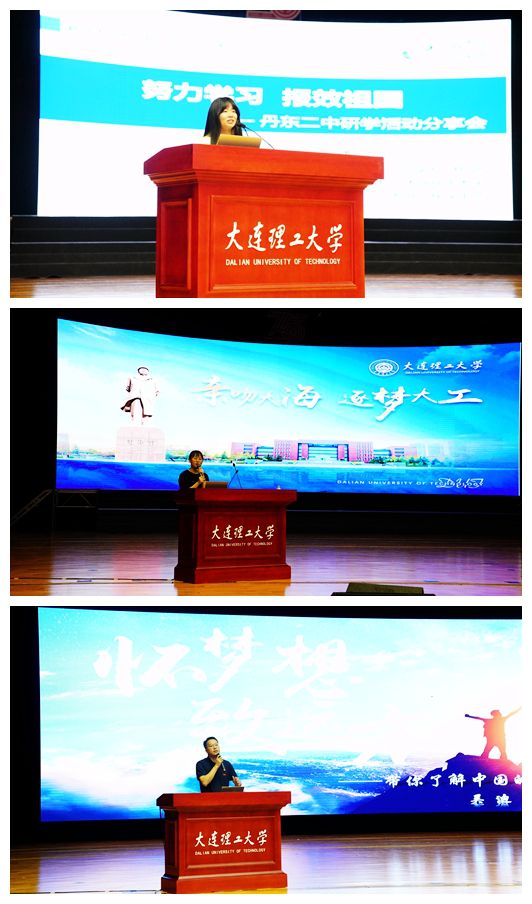 活动期间,师生们共同参与了研学讲座和交流会,多位优秀校友和校内专家进行了分享和交流。毕业于丹东二中、目前在大连理工大学攻读博士学位的杜妍,以及留校教师任亭钰,与师生们分享了他们的学习和生活经历,鼓励学弟学妹们努力学习,报效祖国,不断提升自己的综合素质和创新能力。大连理工大学教学运行保障中心主任吴迪为大家带来了一场以《怀梦想,致远方—带你了解中国的大学》为主题的专题讲座。吴主任从梦想是什么,多角度了解大学、值得选择的大工等方面进行了全面介绍,让师生们对中国大学有了更深刻的认识。他强调,大学不仅是传授知识的殿堂,更是培养创新精神和实践能力的重要场所。他鼓励学生们要怀揣梦想,勇于追求,不断挑战自我,为祖国的繁荣富强贡献自己的力量。讲座期间,师生们积极发言,分享自己的看法和感悟,现场气氛十分热烈。