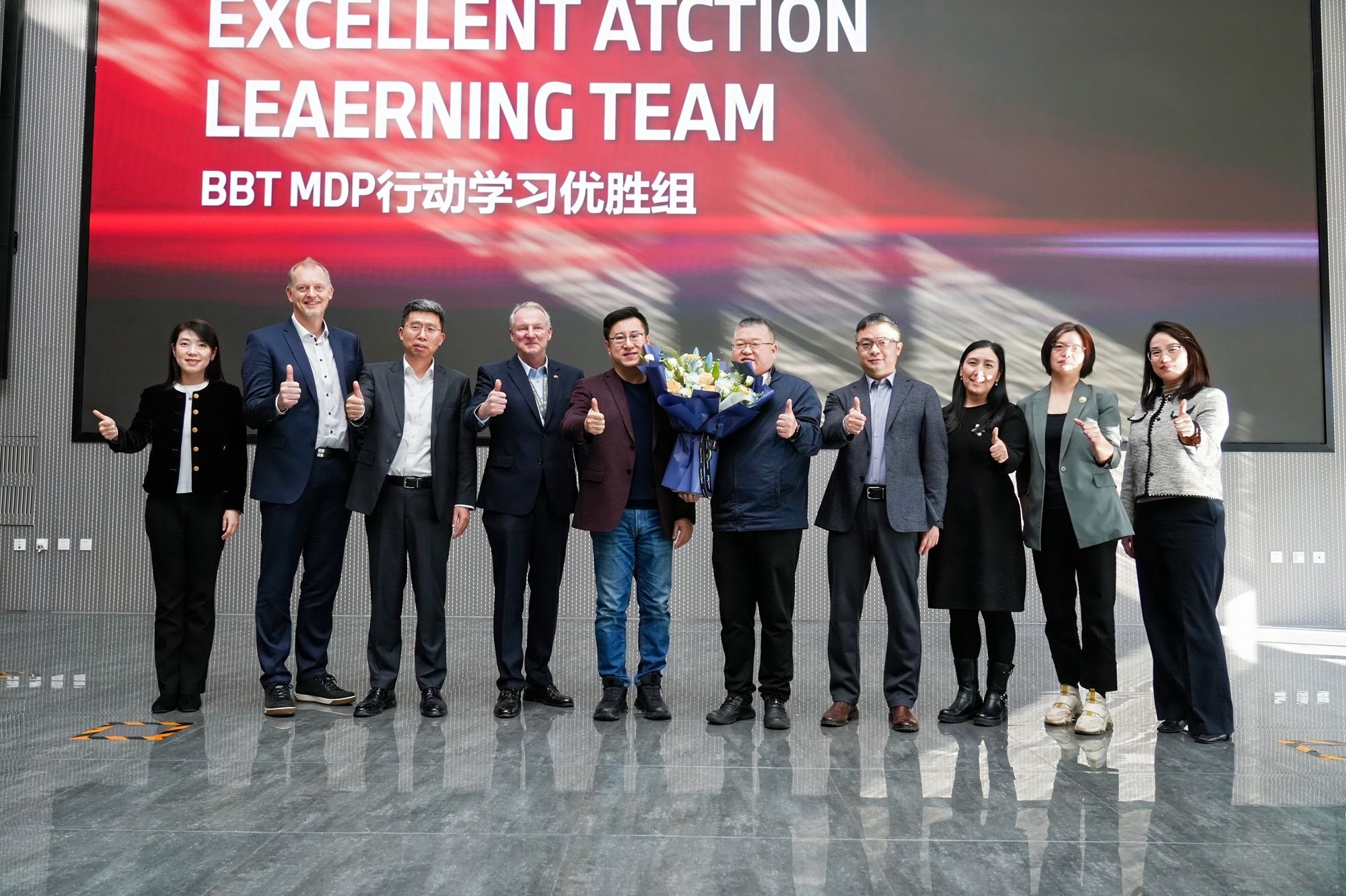 典礼尾声,嘉宾们为学员颁发结业证书,同时将行动学习优胜组奖杯授予表现卓越的团队。上官楠林先生随后发表了总结讲话。他表示,BBT MDP 聚焦培养适应时代变革的管理精英,学员们在三年间,于多维度管理课程中精研深修,从战略布局到运营细节,从团队引领到创新驱动,已然成为企业在战略转型期的关键力量。期待学员们带着对管理创新的深刻理解与实践经验,推动华晨宝马在技术创新、市场拓展以及可持续发展等多方面实现新的突破。