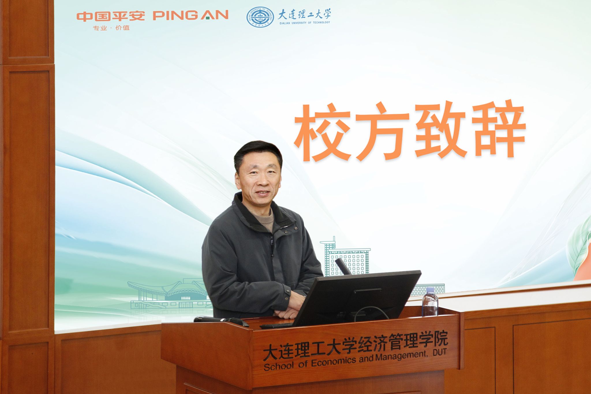 大连理工大学培训中心(远程与继续教育学院)党总支书记韩贵秋在开班仪式上致辞。他首先感谢中国平安财产保险股份有限公司对我校的信任和认可,并为大家介绍了学校的发展历程及取得成就。他指出,我校与中国平安财产保险股份有限公司有坚实的合作基础,希望借此契机,双方继续加强合作与交流,共同推动保险行业的高质量发展。