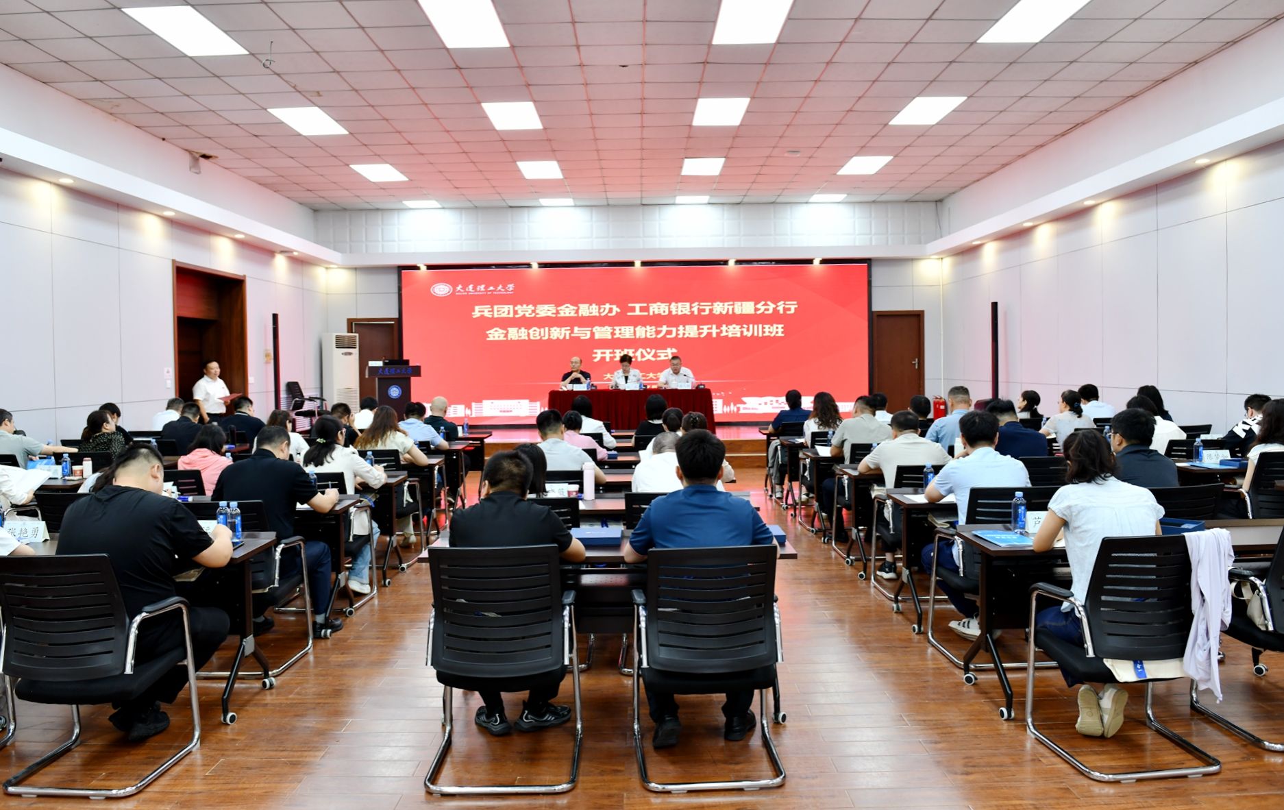 时逢大暑至,万物正韶华。7月22日,为深入贯彻落实中央金融工作会议精神,提升金融从业者专业素养与综合能力,由新疆生产建设兵团党委金融办、工商银行新疆分行联合主办,大连理工大学培训中心承办的“金融创新与管理能力提升培训班”正式开班。新疆生产建设兵团党委金融办主任、兵团党委金融工委书记(兵团地方金融管理局局长)荆莉,工商银行新疆分行党委委员、副行长迟云浩,大连理工大学培训中心常务副主任滕人轶出席开班仪式。本次培训共有50余名学员参加。开班式由培训中心副主任郑中兴主持。