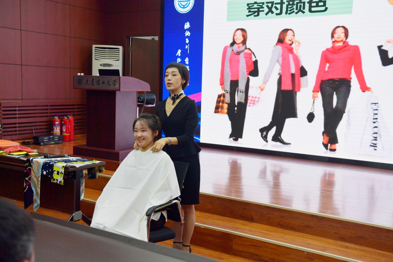 接下来,小雨老师采用现场示范、互动交流等多种形式活跃气氛,通过演示服装色彩选择,生动形象地告诉大家如何塑造良好形象,唤醒大家对美的追求,让我们期待更美好的自己!